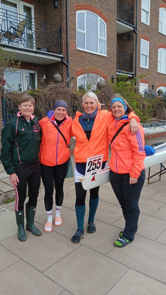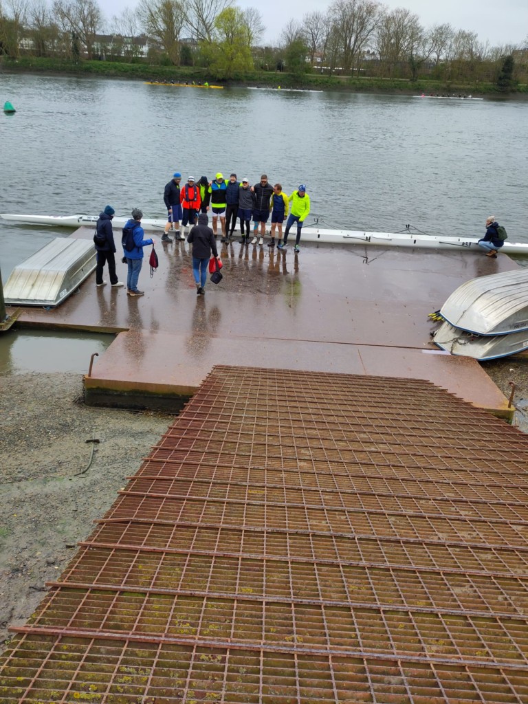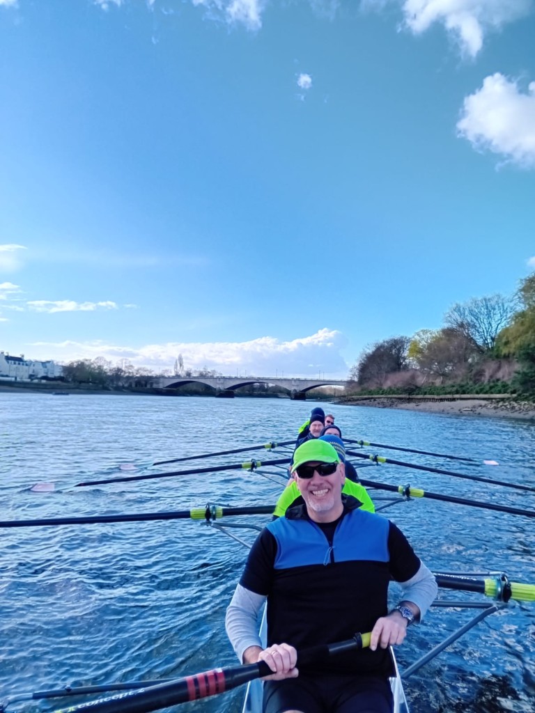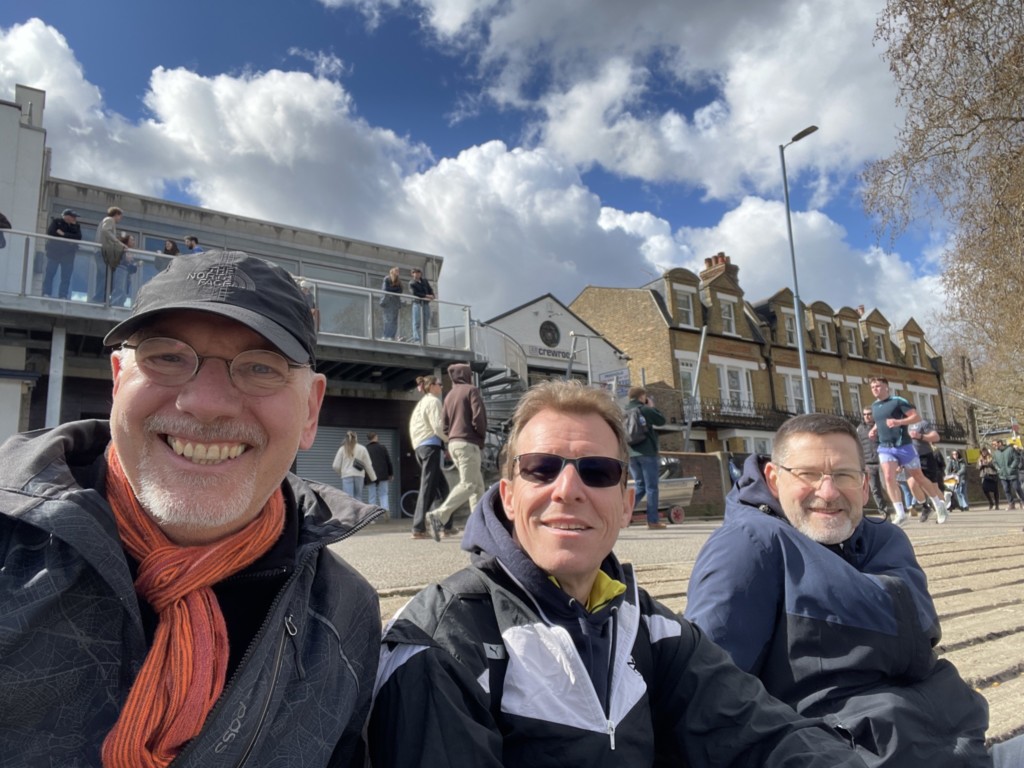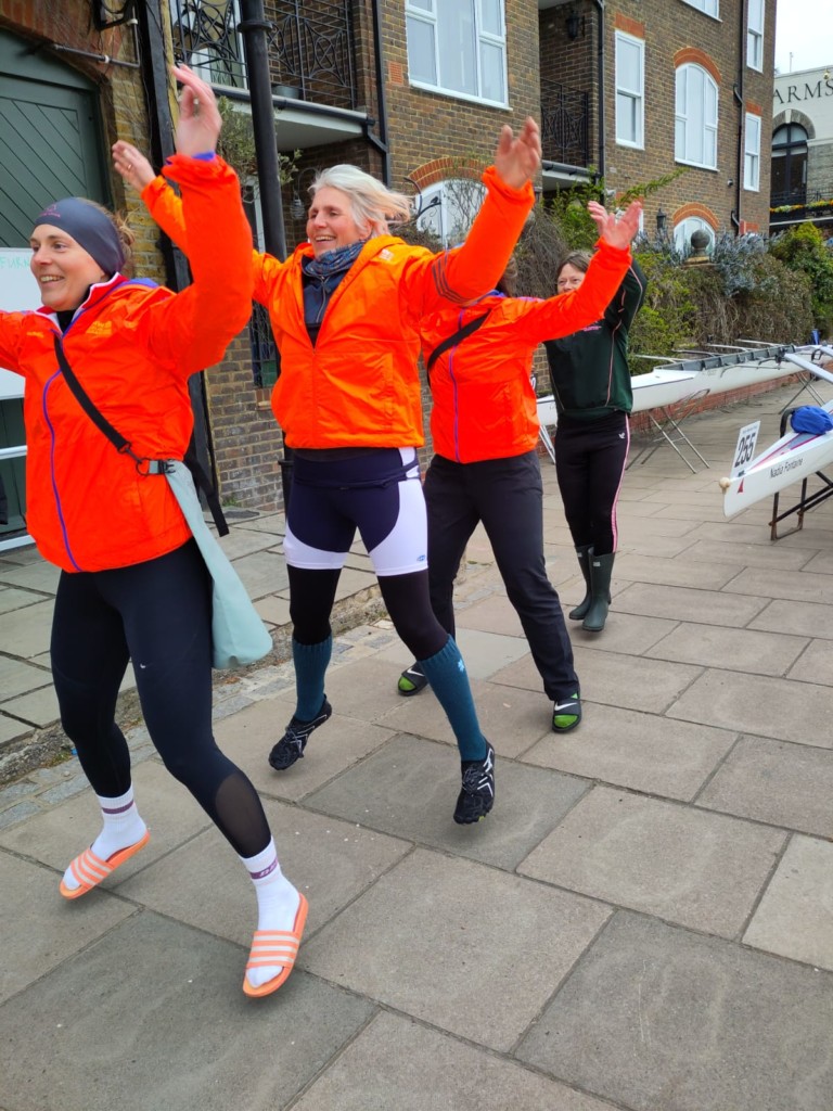 Der Regattatermin am Anfang der Osterferien war einfach zu verführerisch, und so fand sich nach 2025 zum zweiten Mal eine unerschrockene Masters – Männer – Crew, um am „Head“ in London teilzunehmen. Altersmix? Die diesjährige Crew hatte einen Altersunterschied von 40 (!) Jahren im Boot und wurde von einem richtig großen Fanblock unterstützt. Mit im Fanblock unsere Antje — aber Moment mal: Da gäbe es eine Möglichkeit, mit einer gewissen Julie vom Londoner Ruderklub Auriol – Kensington (kurz AK) eine Mannschaft zu formieren und wer Antje kennt…. Kurzum: Dieses Mal war Saffo mit zwei Booten dabei, einer Damen – Composite – Crew im 4x und der traditionellen Männercrew im 8+.