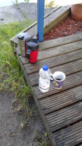 Viele Worte stören die morgendliche Atmosphäre auf dem Wasser, außerdem wird ja immer so schön gesagt, ein Bild sage mehr als 1000 Worte. Sehr eindrucksvoll finde ich daher diese Installation von Kaffee-Bechern, welche den Steg zierte, als wir zu unserer ersten morgendlichen Ruder-Tour aufbrachen: